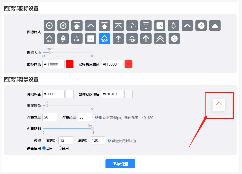 如何设置和修改TOP返回顶部按钮样式?